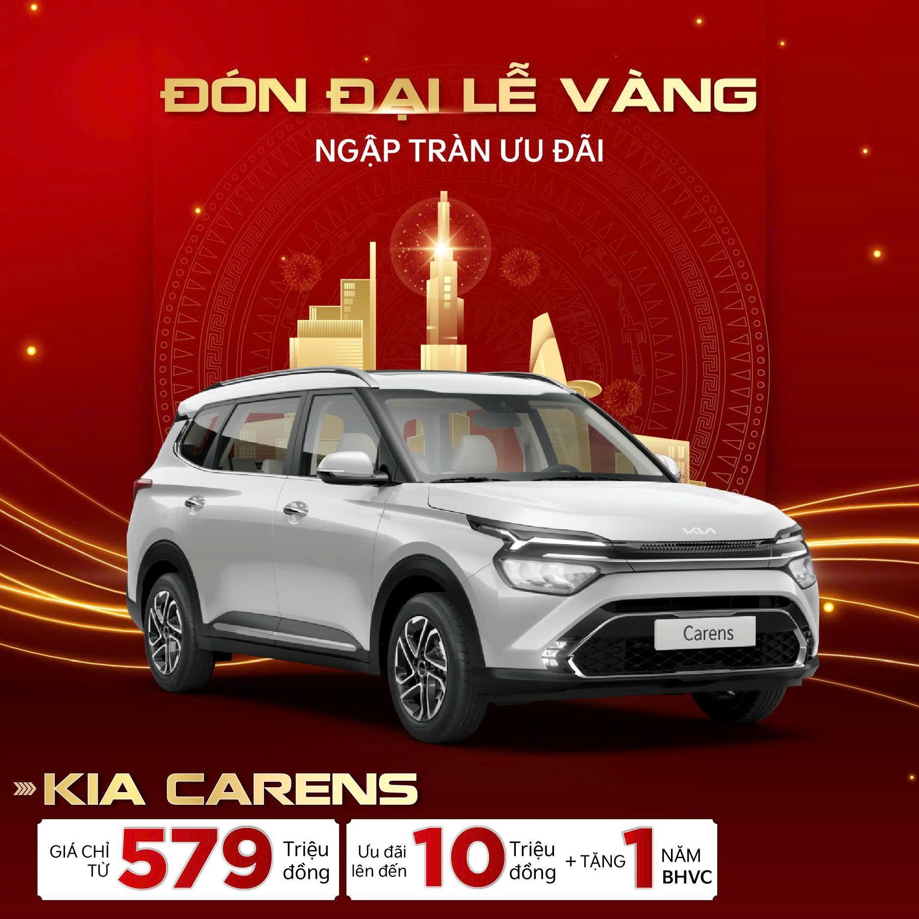 KIA CARENS – Lựa chọn lý tưởng cho gia đình hiện đại được ưu đãi với mức giá chỉ từ 579 triệu đồng, đi kèm hỗ trợ lên đến 10 triệu đồng cùng quà tặng 01 năm bảo hiểm vật chất, giúp khách hàng an tâm sở hữu và sử dụng ngay từ những ngày đầu.